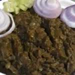 Chicken Sheek Kabab, Beef Bhuna (Mild), Saag Chicken, Naan, salade, rijst, zoete yoghurt