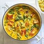 Indiase kaas met kokos, yoghurt, paprika en tomaten (mild)
