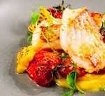 Zalmfilet met knoflook, ui, koriander en tomaat
