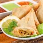 Kip Samosa, Garlic Lams Curry (mild), Butter Chicken, Naan , salade, rijst, zoete yoghurt