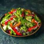 Geroosterd vlees met paprika, tomaten, ui en groene peper