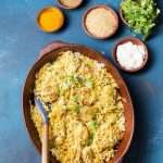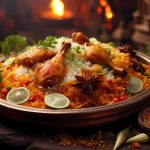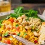 Rijstschotel met geroosterde kip en Indiase kruiden